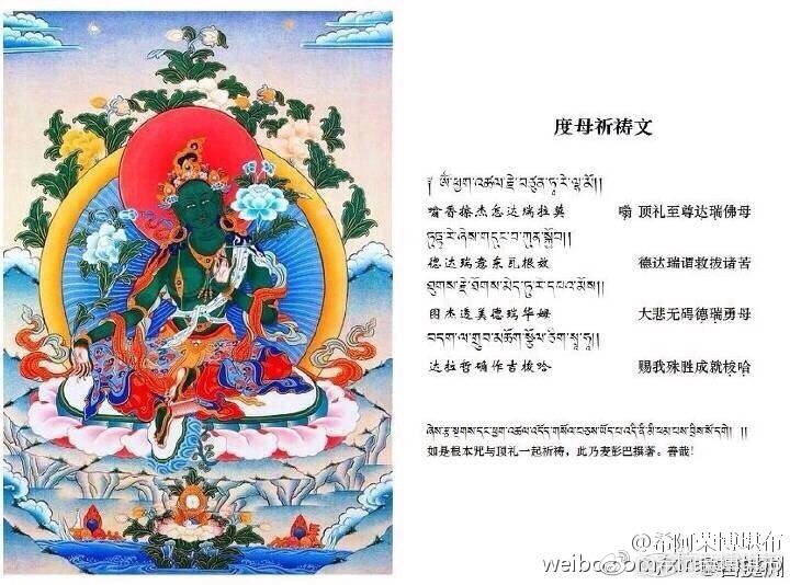 今天是藏历萨嘎月二十五,空行母节日。大家应常常念诵度母祈祷文,祈祷度母加持一切众生,除诸病苦灾难,止息烦恼,命终往生极乐世界,最终获得究竟安乐。