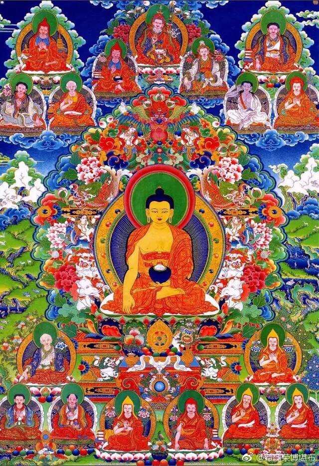 今天是藏历初十,莲师的节日。祈祷邬金大宝尊,违缘障碍无缘生,顺缘意乐悉圆满,祈赐共不共悉地。嗡啊吽班匝格热班玛色德吽! 图集|རྗེ་འབངས་ཉེར་ལྔའི་ཐང་ག་བཞུགས། 莲师君臣二十五尊相
