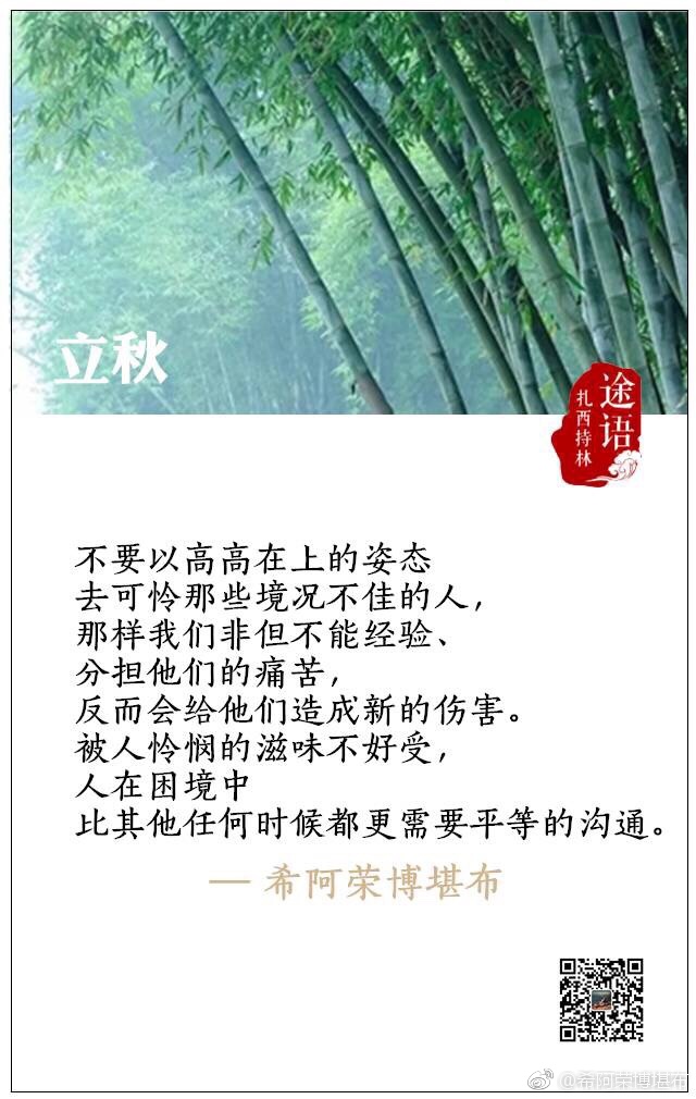 远离痛苦获得安乐,是所有众生共同的愿望和平等的权利,建立这个见地很重要,因为人与人之间缺乏真正的理解和宽容,内心轻易就陷入孤独、焦虑和怨怼中,社会矛盾、问题随之涌现,这背后一个重要原因就是大家认为只有自己才想、才应该离苦得乐。建立这个见地很重要 | 箴言