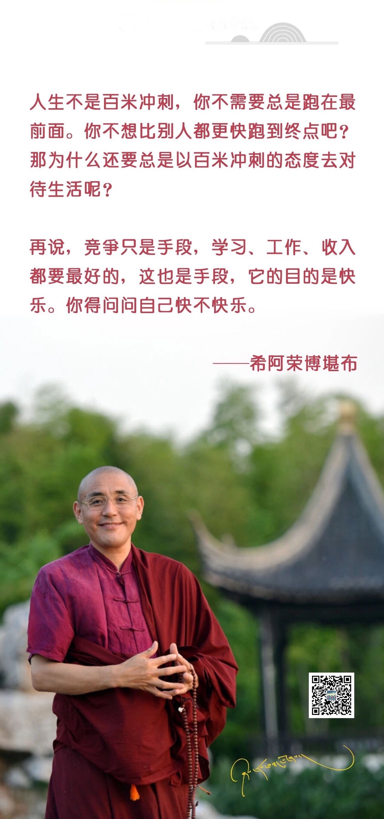 为了让自己的心获得暂时与究竟的安乐,无论是否接受佛教作为自己的信仰,都应该以开放的心态去了解佛教。人生中各种各样的痛苦和烦恼,产生的原因,止息的方法,佛法里都有清晰的解释。