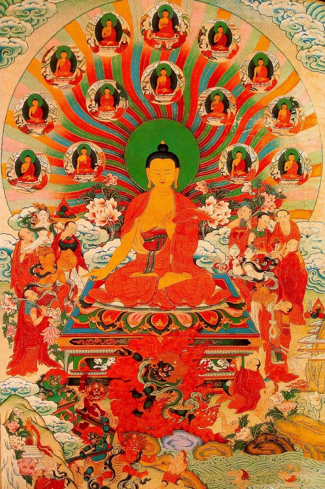 《亲友书》中说,只要是佛像,不管它的材质如何、制作是否精致,哪怕是泥塑木雕的,也应生起恭敬心。释迦牟尼佛当年还亲口承诺:“在我涅槃之后,人们若造佛像,对其存有感恩心或信心,经常忆念,这跟佛陀在世没什么差别。”所以,观想具足相好的佛像,对今生和来世有重大的意义。——法王如意宝