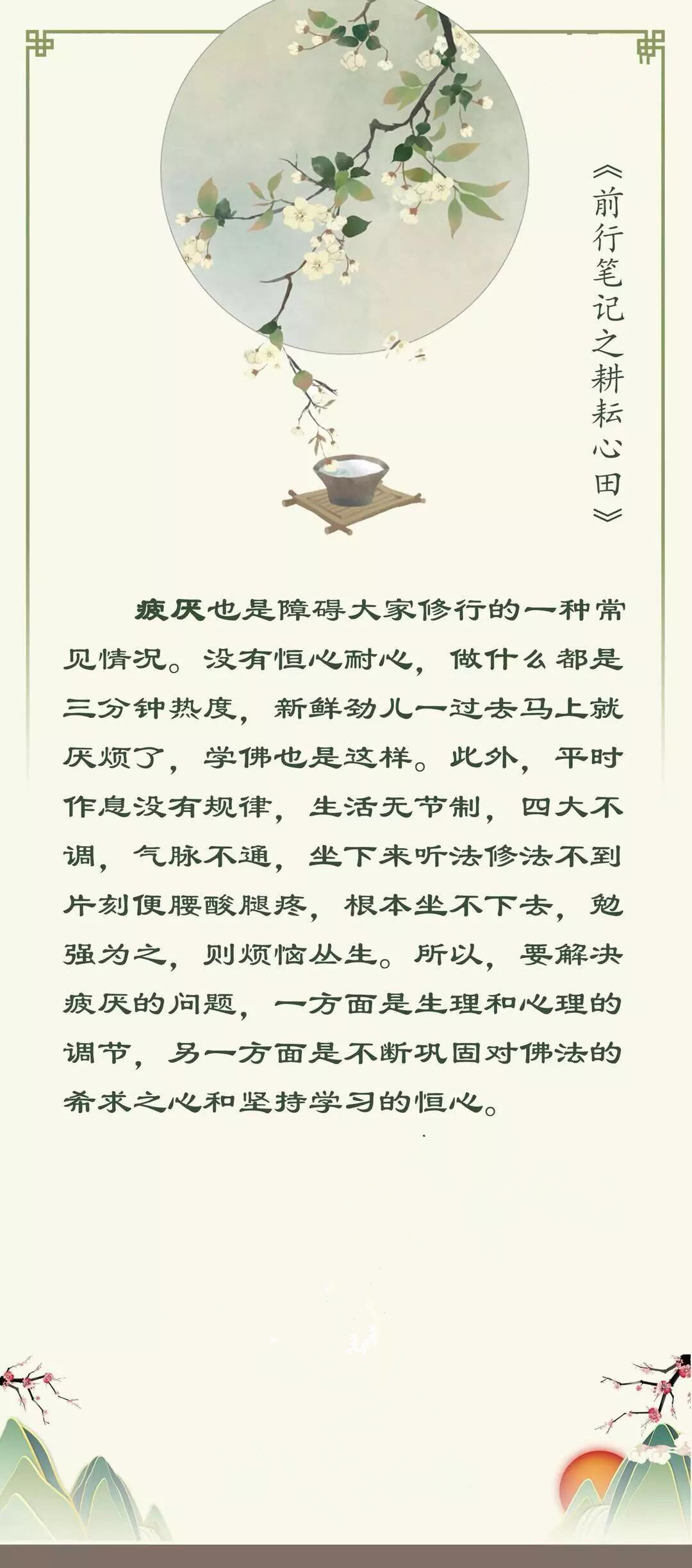 怎么才能修有所成?没别的办法,就是老老实实去修。别总以为凡事都有个窍门,总想着走捷径。该吃的苦,别想少吃。甚至该有的困惑,也别总想着去避开。困惑往往蕴藏着豁然开朗的机会。