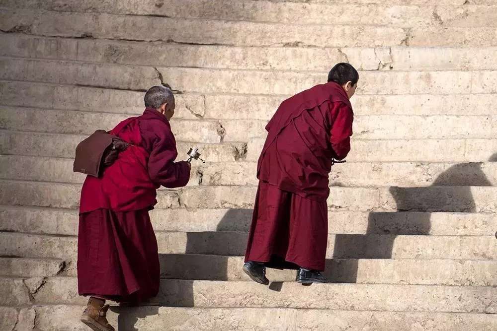 现在,藏传佛教的在家人和出家人裙子的颜色没有不一样了,唯一的不同之处就是这个条。出家人就有这个横的竖的一条一条的,在家人没有这个条,这就是唯一的区别。不懂的人从外面看起来就像没有任何区别一样。最近有些人还是要求在家人穿密法里面在家人的袈裟披,这样就比较合适。但传统上一直是这样,一时要改过来也有点难度。实际上是有区别的,但不是很了解的人就看不出太大的区别,就是这样。网页链接 [慧灯问道(1)发掘生命的吉光片羽: 心变了,一切都会变]