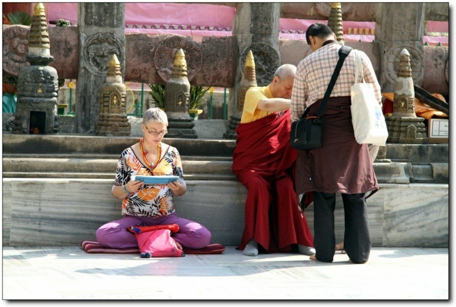 问:堪布您刚才讲到,去朝拜了与佛陀有关的四大圣地之后,即使造过恶业,因为朝拜的机缘,也有被消除的可能。我刚刚看到有些观众朋友会心一笑,看起来大家可能有类似的一些经历,也可能去过这些圣地。其实很多人去圣地的时候,抱的心态是不一样的,有些人可能是猎奇,想去看看那里到底有什么;有些人说,我想去旅游,那个地方很漂亮。作为修行人,去圣地时应该抱有什么样的心态才更有加持力呢?答:如果修行人去圣地,应该到这些地方去打坐。比如在菩提伽耶,经常举行各种各样的法会,还有很多人在那里打坐、修行,南传的、汉传的、藏传的都有。如果是一个佛教的修行人去圣地,那不仅仅是去看一看、转一转,还应该进行一些如打坐、发愿等更深层的活动,这些是更重要的了。如果是一般的佛教徒,也可以发愿、供养等。在很多圣地都有殊胜之物,尤其菩提伽耶的塔里面珍藏有释迦牟尼佛的舍利。佛经里有明确记载,从几个方面来说舍利与佛陀是一模一样的。比如在释迦牟尼佛的舍利面前发愿和在释迦牟尼佛面前发愿,是完全一样的,另外供佛和供佛的舍利也是一样的。所以当我们去了圣地,首先就要供养,供灯、花、水果、香等。更重要的就是发菩提心以及发愿。自己有什么心愿,包括生活上的,现在的、未来的,也可以帮父母亲人发愿,还可以给他们回向,这些都很重要。最重要的就是要发愿自己能够在生生世世中遇到大乘佛法,值遇大乘佛法的善知识,而且生生世世不忘菩提心,生生世世利益更多的众生。所以,修行层次不同的佛教徒应该有不一样的朝圣方法。另外,即便不是佛教徒,纯粹以游客的身份去旅游,仅仅眼睛看到这些地方也是有功德的,也能播下善的种子。网页链接 [慧灯问道(1)发掘生命的吉光片羽: 寻求内心的平静]