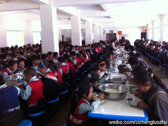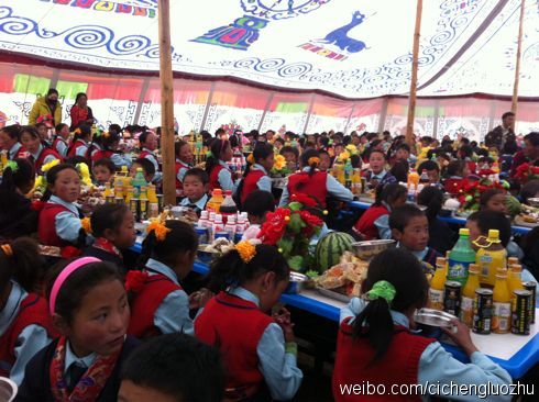 昨天下午,我抽空到我们的学校去看望了老师和学生们。学校很偏僻,从昨天下午到今天下午都没有电、没有手机信号。我参加了学生们背诵考试的监考,他们背得非常好,我高兴地给大家发了带去的糖果和笔。这是今天中午吃饭的情景。