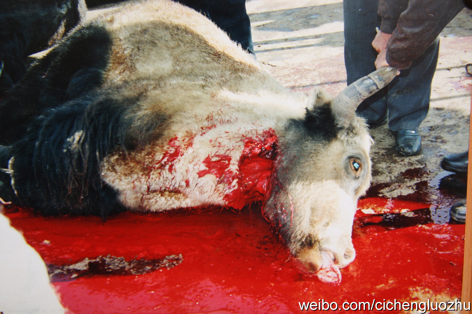 他们的一举一动,吓得不知所措。其中一头牛更是吓得浑身颤抖、眼泪直流。起初我以为它是因为有眼病而流泪,靠近仔细观察,发现它眼睛没有任何问题,就是害怕成这样的啊!我立即买下来放生了。