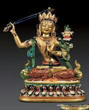 文殊菩萨左手持经函,右手持宝剑,这昭示我们,修行就是举起智慧的宝剑,消灭各种错误的知见及其所导致的烦恼。宝剑锋从磨砺出,文殊菩萨的智慧宝剑,来自于哪里呢?就来自于经函,也就是从对经论的反复闻思修中,锻造出来的。