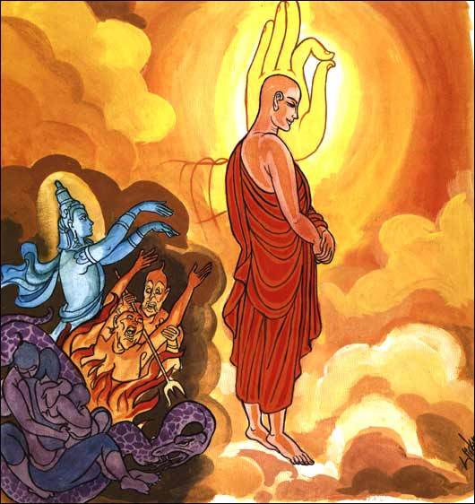 佛的智慧遍知,对任何一个众生的情况,无不知见,谁在衰败中,谁在感受苦,谁的因缘已经成熟可以调化,应以何法门调化,这些佛都一一了知;并且佛以普光明智昼夜恒时观照整个世间,对于应度化的有情,以大悲丝毫也不会错过,连一刹那也不可能延误。正因为佛心以全法界为体,智无不见,悲无不入,所以,在十法界当中,只有佛陀才是最圆满的导师。无论我们在何时何处,有何种怖畏,只要我们祈祷佛陀,他一定会加被我们。