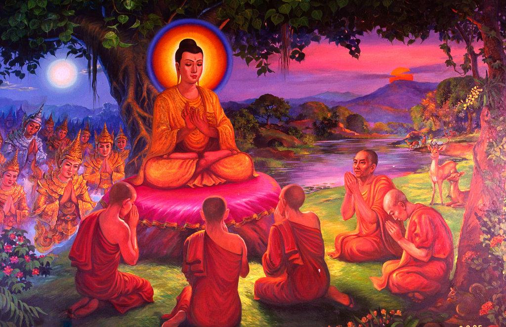 佛陀对于心识不调柔、充满烦恼的众生,是以宣说妙法来转动他的心,让他的心逐渐消掉执著,得到解脱。佛陀对众生宣说苦集灭道四谛,首先宣说苦,让众生的心对三有产生厌离;然后说集,让众生知道苦的根源实际就是对于自我的执著;然后宣说灭,让众生希求苦因、苦果都寂灭的涅槃;然后宣说道,让众生趣入无我的正道,证得涅槃妙果。这样众生随顺佛的言教,决定能让心相续解脱。这就是调御的方法。