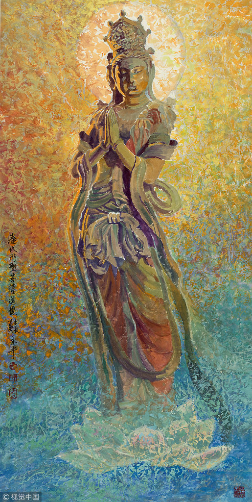 《法华经》中说:“若人散乱心,乃至以一花,供养于画像,渐见无数佛。或有人礼拜,或复但合掌,乃至举一手,或复小低头,以此供养像,渐见无量佛,自成无上道,广度无数众,入无余涅槃,如薪尽火灭。