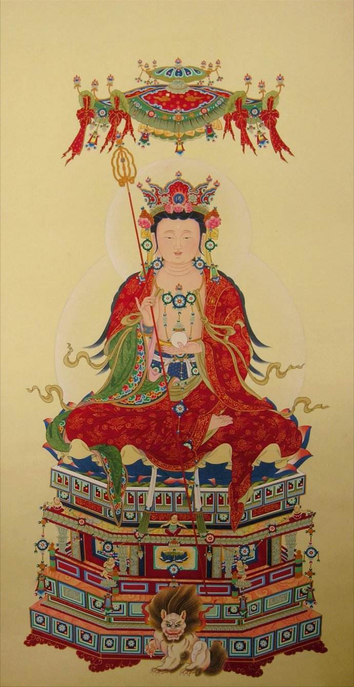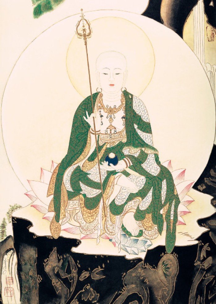 既然地藏菩萨成为满愿之王——速疾实现我们所愿的依处,而且唯求一尊等于祈求了无数诸佛菩萨,而且他满愿极其迅速,成为释迦一代教法中所推出的满愿大总集,因此,我们应当依循释迦如来的指示,一心归依地藏菩萨、祈祷地藏菩萨、礼敬地藏菩萨、供养地藏菩萨,他将成为我们超出轮回达至菩提的大怙主。为此,我们应当一心恭敬地藏菩萨。