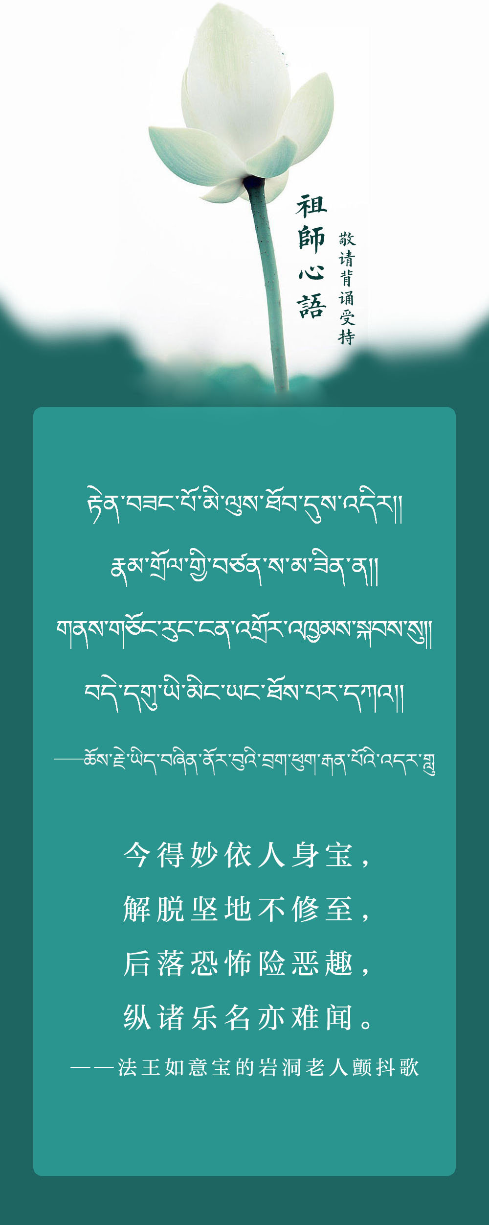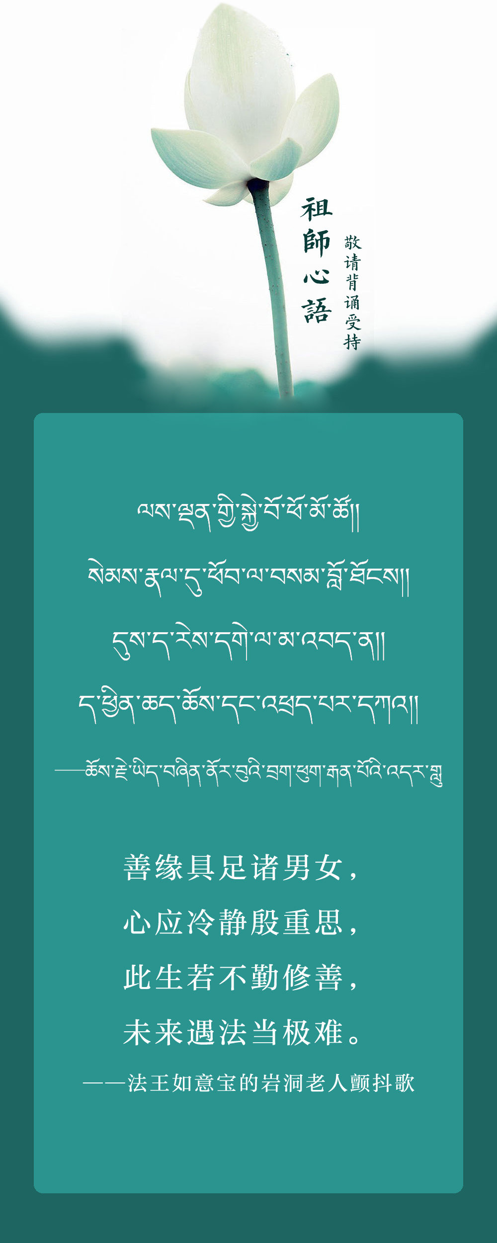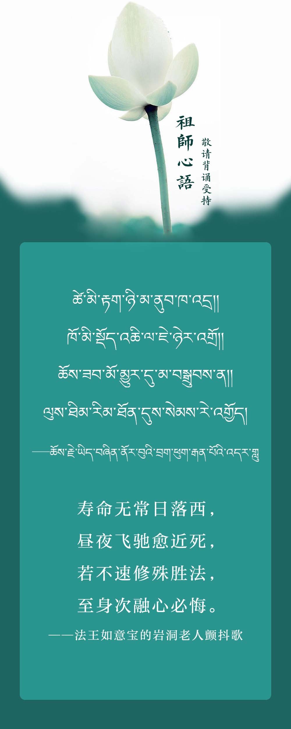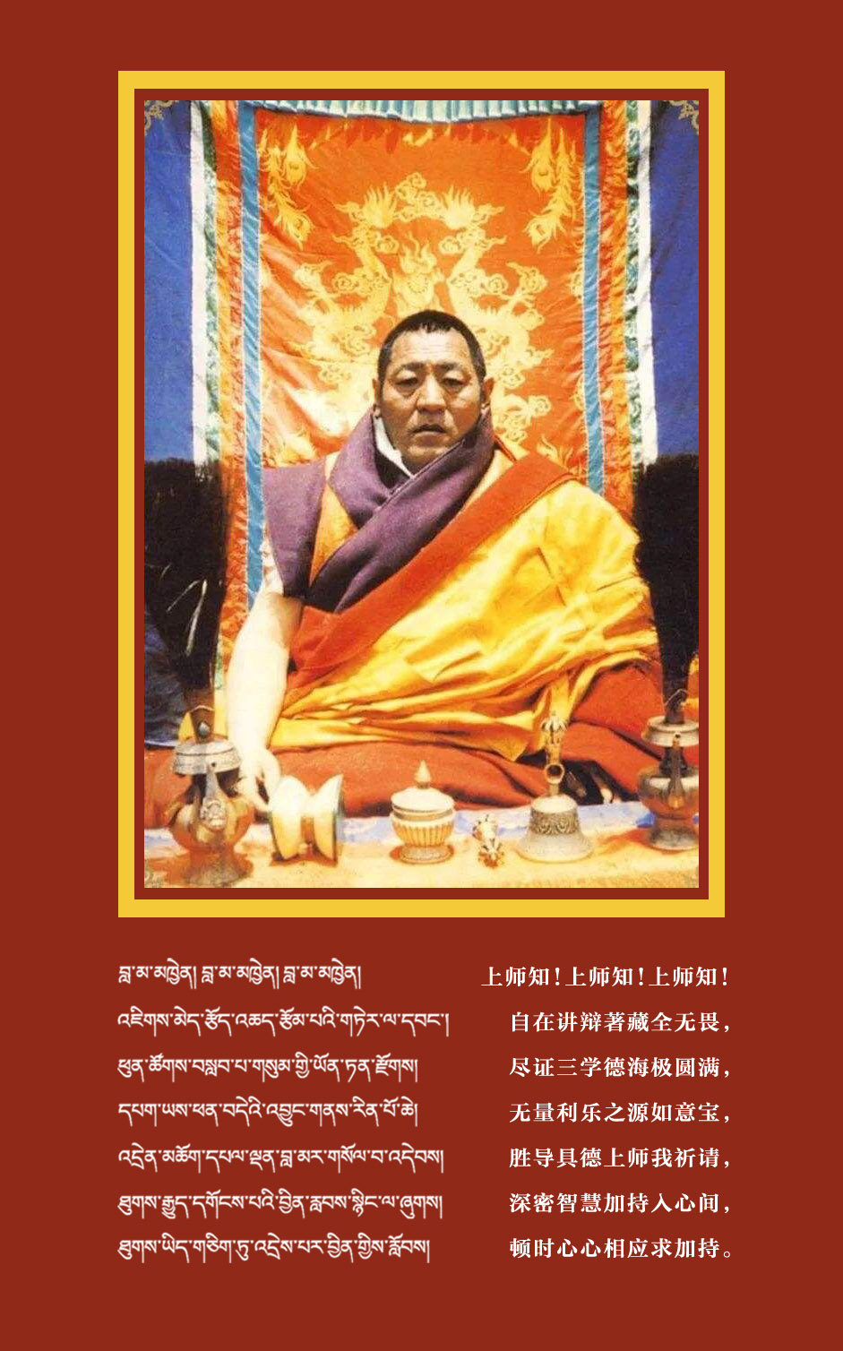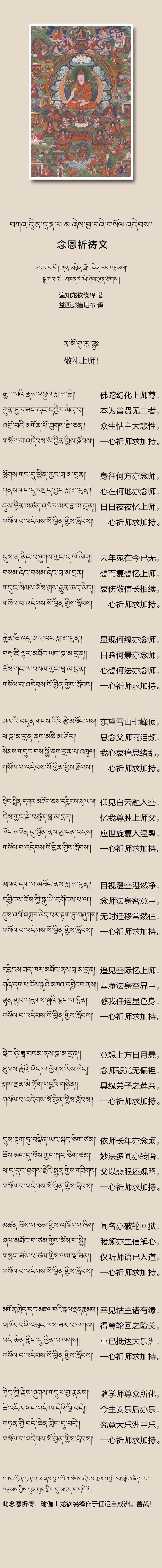 群生怙主上师如意宝,祈祷大悲世世恒摄受。