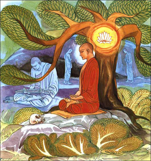 将特别能引生贪欲的对境,明观在自己心前,把他(她)分解为色、受、想、行、识五蕴,最初缘其身体,对每一细节都历历分明地观察。