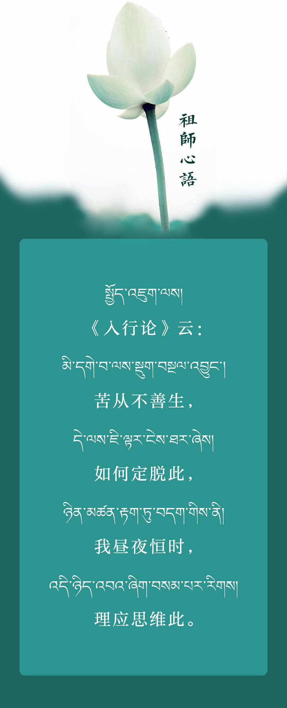 世上最完美、最无私、最圆满的爱,就是利他的菩提心。它是全天下人类有历史以来最崇高的精神、最高尚的情怀、最伟大的思想、最纯真的菩萨心。因此,每天哪怕只修一分钟的菩提心,也非常有意义。
