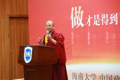 此时我们请到了索达吉堪布,给这一次文化之旅作首场校园演讲。我代表海南大学和中国政法大学,对堪布的到来表示欢迎,也对他鞍马劳顿的辛苦表示敬意。