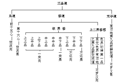 注:1、无垢地至法云地属修道所摄,彼诸共同修法为八圣道(此分法依据大乘《俱舍论》与《现证庄严论》。)