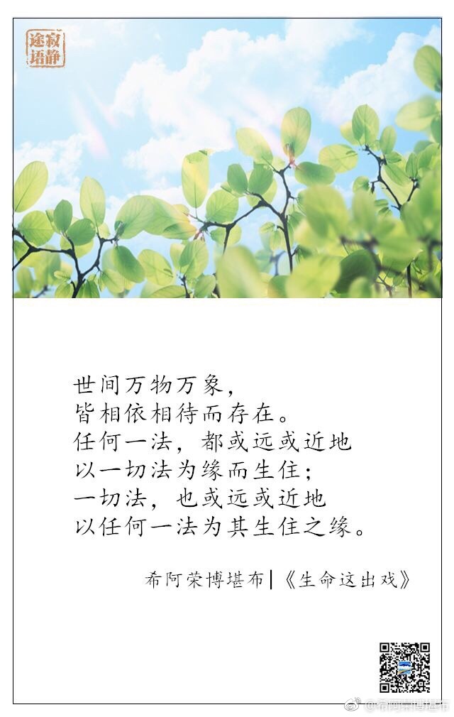 修行者对因果和缘起有着坚定的信解,面对生活的不幸和苦难,能化解的便积极去化解,须承受的则甘心承受。以忏前戒后的心行,怀着隐忍和慈悲,去了结往昔恶性的因果,引生良性的因果。所谓旷达就是视野宽广,了达事物在广阔的时空跨度里发展变化的情况和规律,从而随缘因势,因势利导愿您逢苦不忧丨寂静FM•第132期