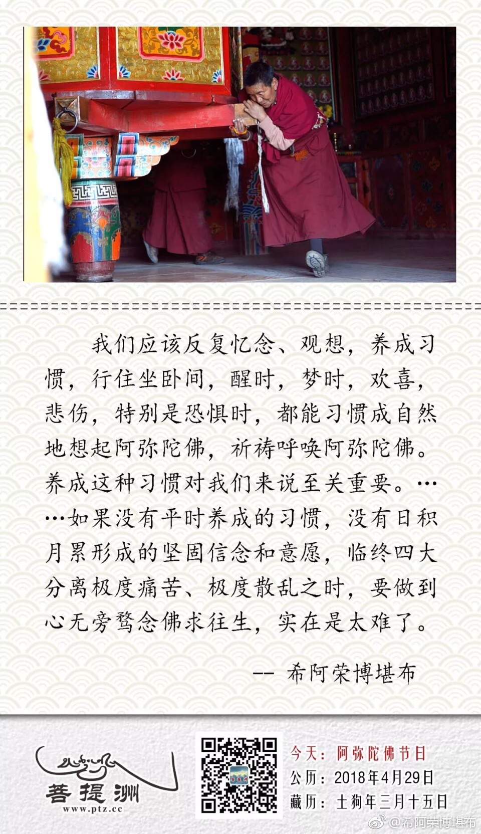 今天是藏历十五 ,阿弥陀佛节日。应发菩提心,持诵阿弥陀佛圣号,愿共诸众生,同生极乐国!阿弥陀佛在他的世界等着我们,就像儿子回到父亲家里一样,不会有一点儿困难