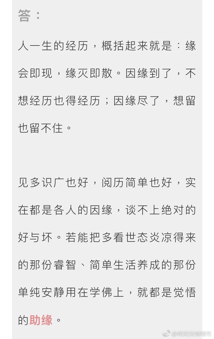 你经历过悲欢离合,这不是修行,只是经历; 如果你在那悲欢离合间体认无常、缘起、因果,这是修行。生病,本身不是修行,借由生病而认识到与生俱来的脆弱、忧苦,由此生起出离心,或推己及人,由此生起悲悯之心,这是修行。很多人都误会了,以为过生活就是在修行