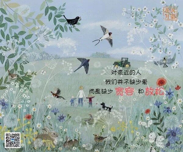 束缚在这种心态当中,去爱就意味着准备去受伤害。越是关系亲近的人越容易闹别扭,比如父母与子女之间、爱人之间,都是真心实意地为对方好,可也常常因为这种满带着欲求的好而彼此受伤害。对亲近的人,我们并不缺少爱,而是缺少宽容和放松。