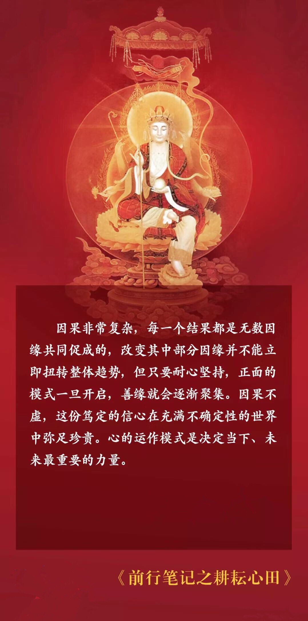 因果非常复杂,每一个结果都是无数因缘共同促成的,改变其中部分因缘并不能立即扭转整体趋势,但只要耐心坚持,正面的模式一旦开启,善缘就会逐渐聚集。因果不虚,这份笃定的信心在充满不确定性的世界中弥足珍贵。