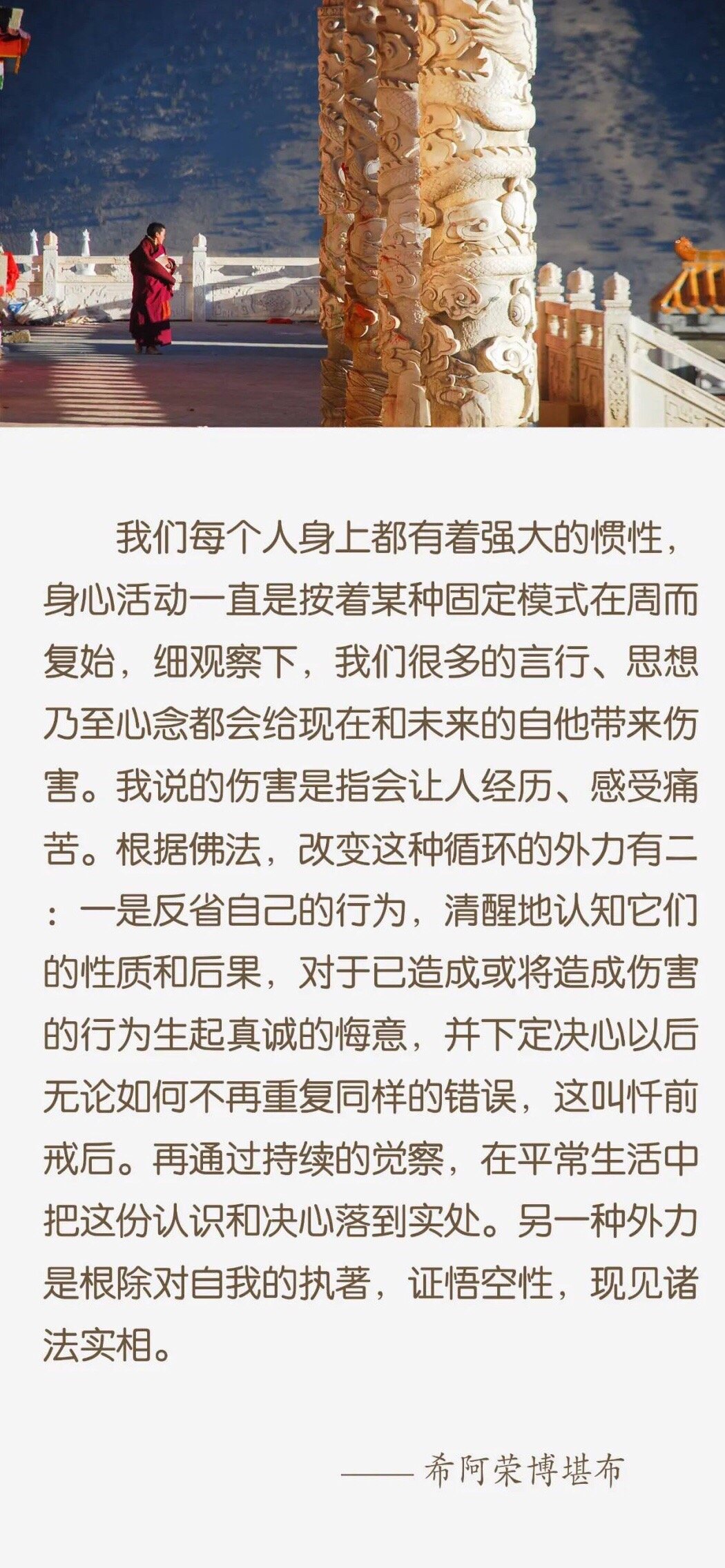 有了健康的行为和生活方式,身心便会逐渐调达,这时才有定的可能。定指不为所动,这实在是现代社会的人很需要的一种素质。 希阿荣博堪布的微博视频