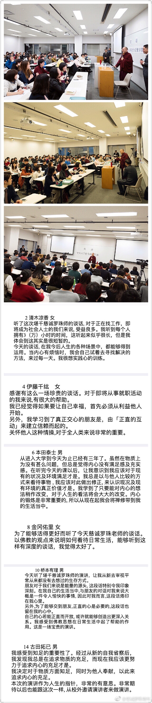 在日本京都大学进行了学术交流和演讲。未来的政治家、科学家、企业家,大多将出自那些全球高等学府。未来的世界,就在他们手里。如果他们爱和平、爱利他,这个世界就有希望了。