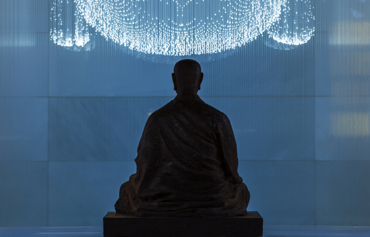 圣僧现前始觉之后,念念合乎本觉,念念趣入菩提果海,直趣觉路。相反,凡夫念念追求幻化六尘,念念趣入生死,这颗分别心整天迷乱攀缘。一个入涅槃,一个入生死,入生死是作茧自缚,入涅槃是恢复本来,在这里面,一切自他的功德都会成就。所以可以这样说,整个三千大千世界百千万亿凡夫的功德总和,也比不上一位圣僧的功德。