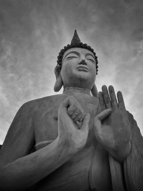 佛的智慧遍知,对任何一个众生的情况,无不知见,谁在衰败中,谁在感受苦,谁的因缘已经成熟可以调化,应以何法门调化,这些佛都一一了知;并且佛以普光明智昼夜恒时观照整个世间,对于应度化的有情,以大悲丝毫也不会错过,连一刹那也不可能延误。正因为佛心以全法界为体,智无不见,悲无不入,所以,在十法界当中,只有佛陀才是最圆满的导师。无论我们在何时何处,有何种怖畏,只要我们祈祷佛陀,他一定会加被我们。