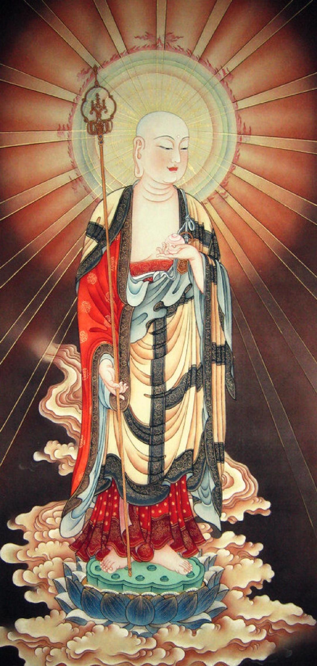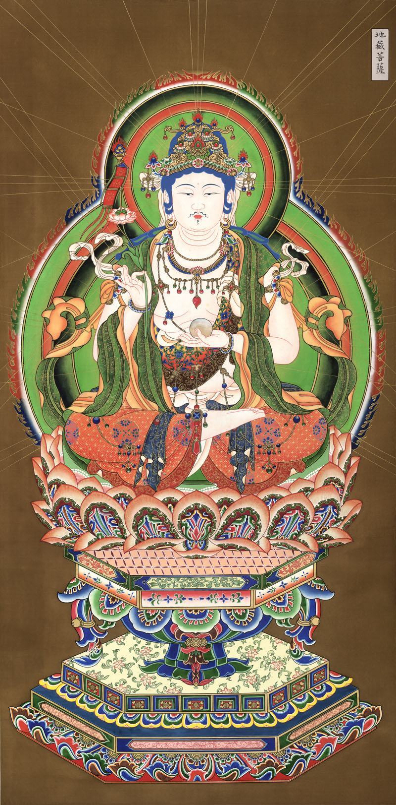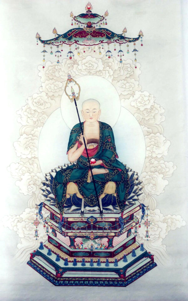 既然地藏菩萨成为满愿之王——速疾实现我们所愿的依处,而且唯求一尊等于祈求了无数诸佛菩萨,而且他满愿极其迅速,成为释迦一代教法中所推出的满愿大总集,因此,我们应当依循释迦如来的指示,一心归依地藏菩萨、祈祷地藏菩萨、礼敬地藏菩萨、供养地藏菩萨,他将成为我们超出轮回达至菩提的大怙主。为此,我们应当一心恭敬地藏菩萨。