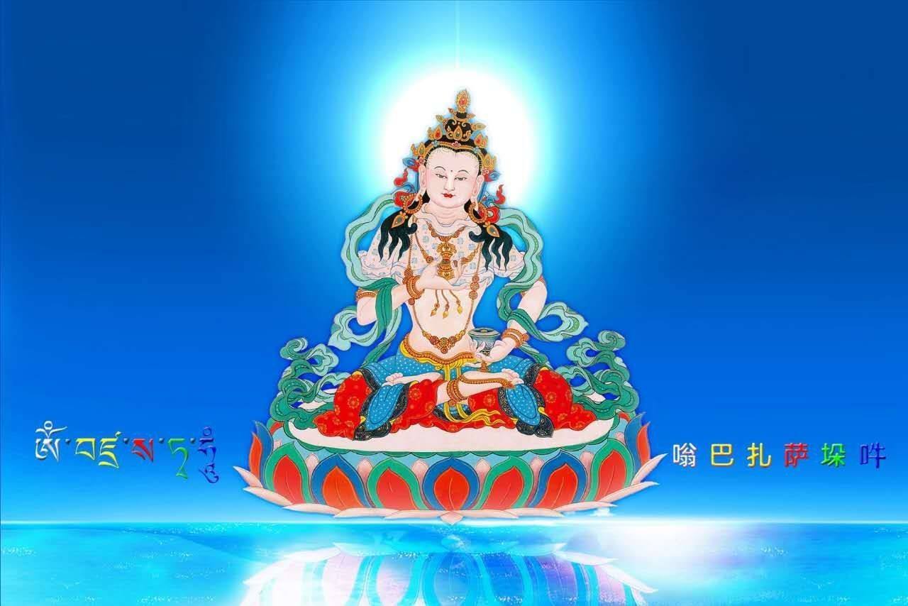 具德金刚萨埵是三世一切诸佛的体性。也就是三世一切诸佛都是此光明本性,而且都入在吉祥金刚萨埵的真心当中,所以,金刚萨埵圆具三世一切佛的体性。而六字心咒“嗡班杂萨埵吽”是金刚萨埵的心髓。也就是从秘密庄严心现种子字、现心咒、现曼陀罗,实际就是佛的智慧,因此要知道,金刚萨埵的圆圆果海摄集在六字心咒当中,这是佛的心髓。