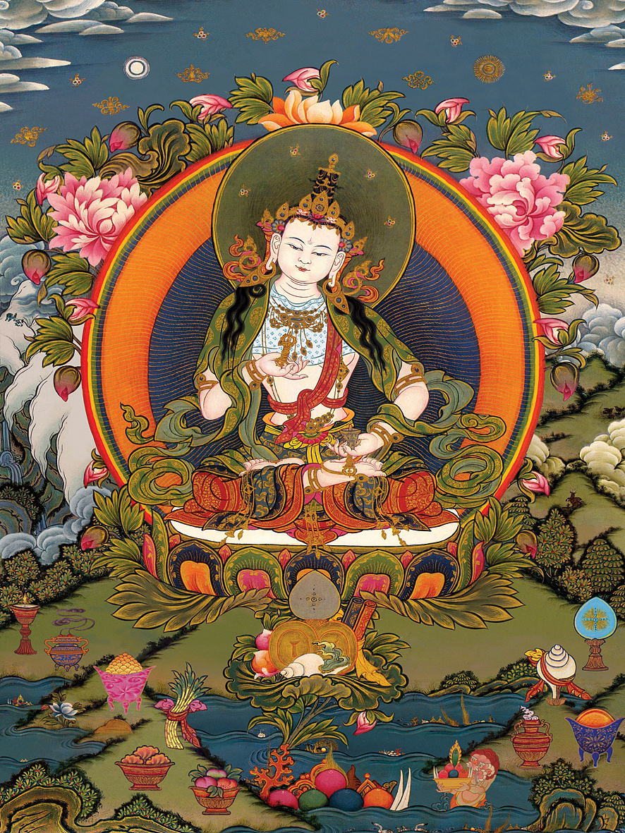 譬如,枝叶花果都要从种子中产生,没有种子则一无所成。同样,成佛、度众生的种子是菩提心;无量波罗蜜多的种子是菩提心;三身、四智、相好等的种子还是菩提心。因此,想修学如来乘,必发菩提心,不可缓慢。