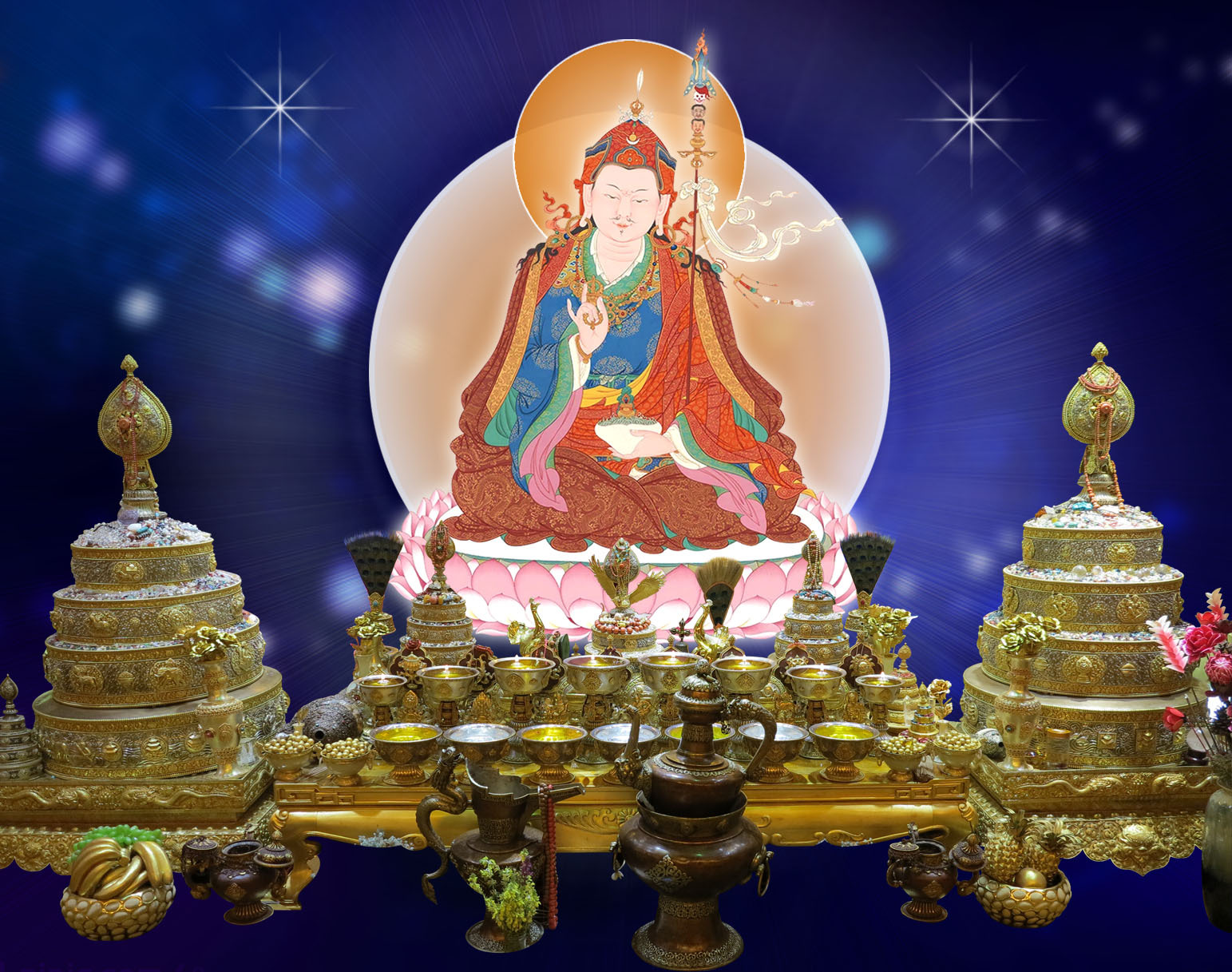 “六月初十,为摩诃格热于莲花茎端出生之良时,名号称颂为莲花生。利益:一一人面前有一一莲花生降临,普消苦病,普灭恶缘障碍,增福增寿,一切损害魔障遮令不生,面见格热尊,听格热法语,得格热指示,福德等同供养一千零二佛。由此原因,当领会此义,秉持初十法行。”