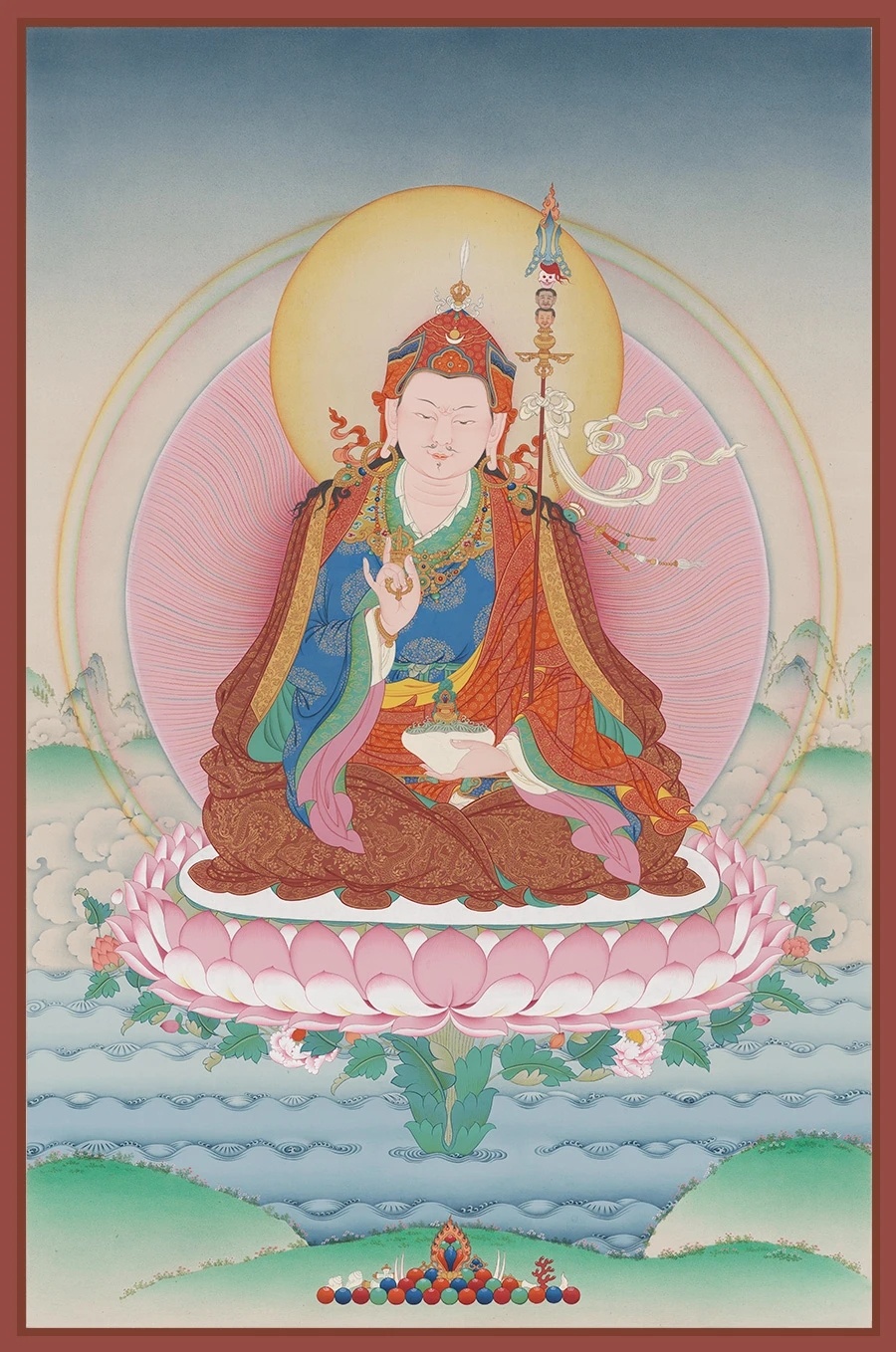 “十二月初十,为摩诃格热治理国政之良时,名号为莲花王。利益:势力增大,财富兴旺,不生病苦,若生病能得疗治,目不明转为明,心不乐转为乐,慧小转为大,病多转为少,邬金格热如慈母悲愍独子般,常时悲心护佑。当领会此义,秉持初十法行。”