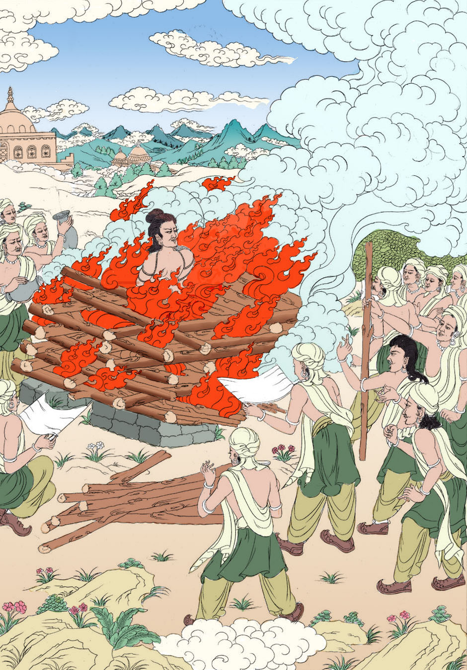 “七月初十,为摩诃格热被投付恒河而在水上舞蹈之良时,名号称为飞空。利益:得胜转变——修习良好,等持善妙,语言能力强,摄持子财良时,持财富藏,快乐少病,净除身体痼疾,眷属众多。由此原因,当领会此义,秉持初十法行。”