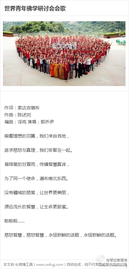 2012年7月,“第二届世界青年佛学研讨会”在香港召开,来自世界各国的许多著名教授、年轻学子,不管是否信仰佛教,都各抒己见表达了自己对佛教的认识、对心灵的探索。非常随喜他们的正见,以及对真理的追求!网页链接