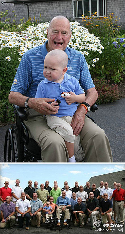 近日,美国前总统老布什突然剃了个光头。他的发言人透露,保安团队一位成员的两岁小孩患上白血病,在治疗中头发掉光了。听说患病小孩要来,怕孩子害羞,老布什赶紧把头发剃了,其他随从也都剃成光头,老布什告诉小宝贝儿:我们都是天生光头党。你要好好治疗哦。