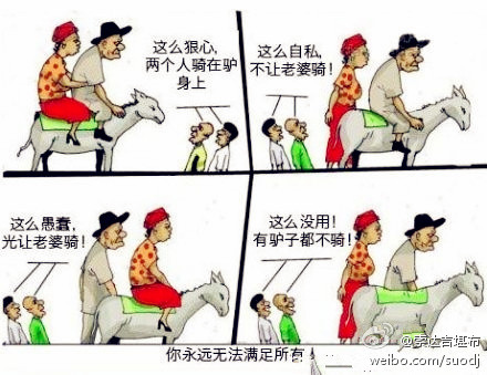 瑞典有一句谚语:“无论你转身多少次,你的屁股还是在你后面。”是什么意思呢?就是无论你怎么做,都会有人说你不对。若能明白这一点,听到跟自己相反的声音,不要让沮丧、恼怒左右你的心情,而应觉得这很正常。反而,如果没有这些,才不正常。