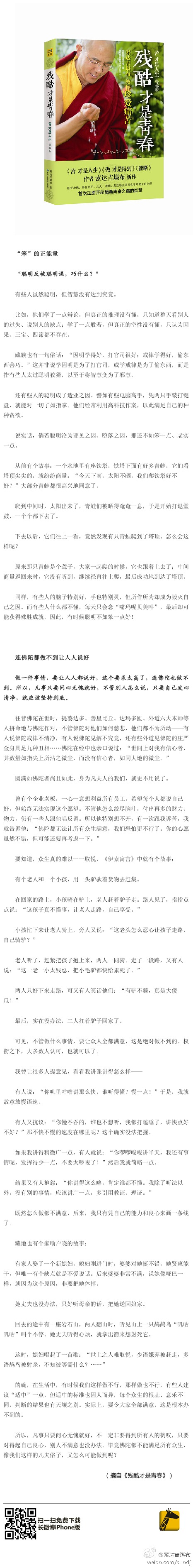 许多人常问我:你为什么出家?你会生气吗?怎么看待当今佛教的一些现象?什么是最适合城市白领的修行方法?如何面对“剩男”“剩女”现象?怎样避免“信息焦虑症”“手机强迫症”?面对雾霾,如何调整心态?……前不久我做客凤凰网时,对此逐一作了回答,希望对你有一点启发。网页链接