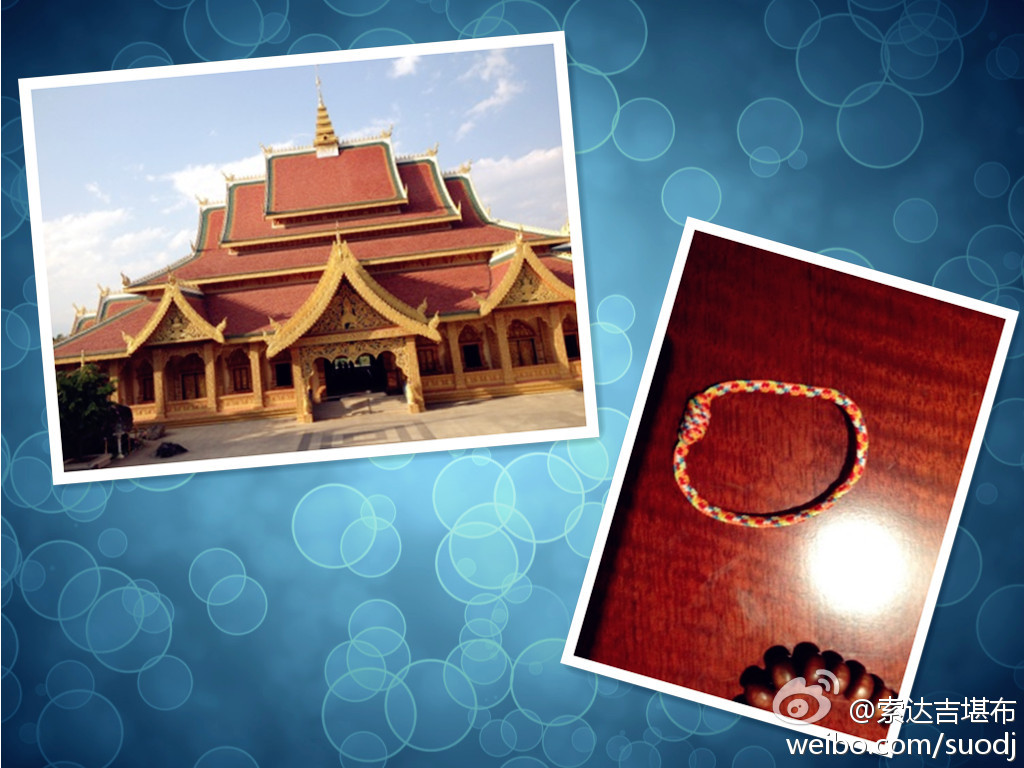 昨天,我朝拜了一座南传佛教的寺院,看见一位小沙弥正在为排队的信众作加持。见到这一幕,让人不禁产生恭敬心、欢喜心。我也默默排在队伍后面,对他恭敬地合掌、顶礼,接受他的洒水、念咒、加持,得到一条加持绳。