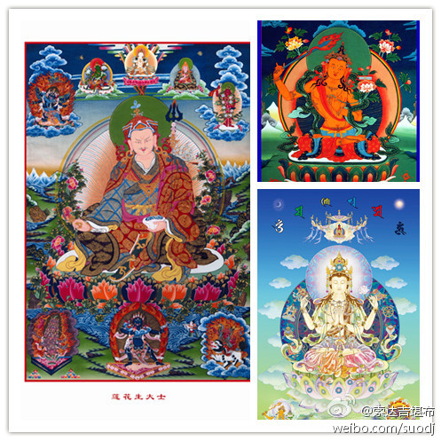 当你出现违缘时,应祈祷莲花生大士,他加持的飓风会吹散障碍你的厚云;当你被迷茫的黑暗笼罩时,应祈祷文殊菩萨,他智慧的阳光会为你指引方向;当你内心卷起粗暴的热浪时,应祈祷观音菩萨,他慈悲的甘霖会让你的心得以清凉。