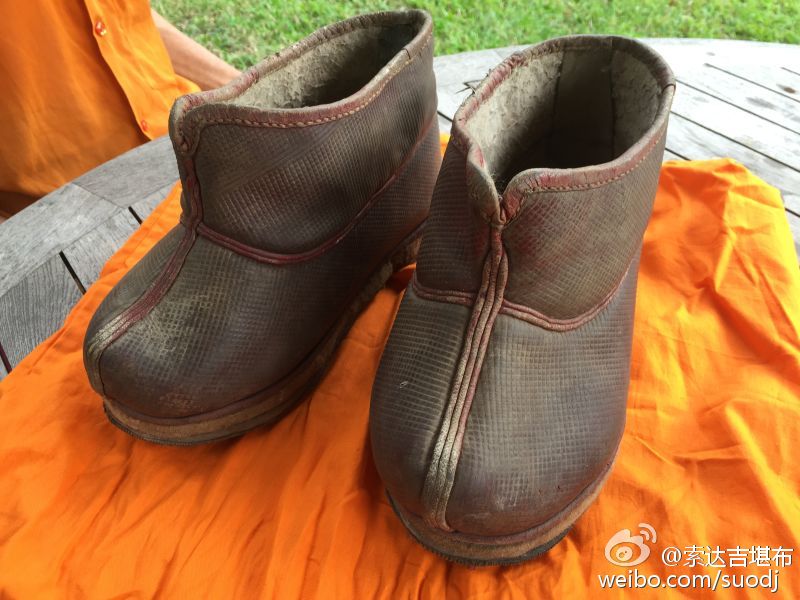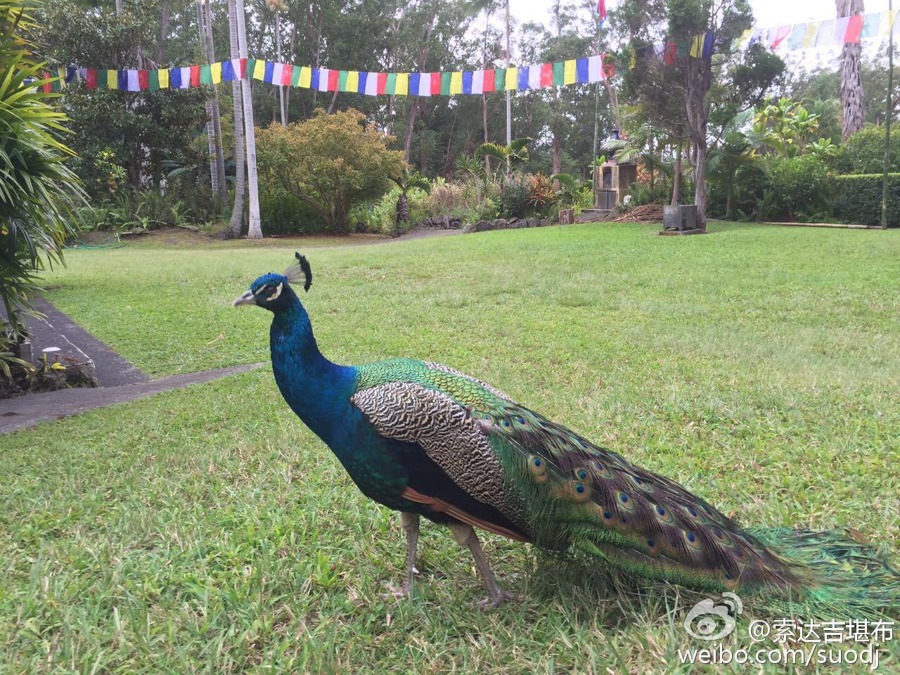 20多年前跟法王一起去夏威夷,这是那里的云、那里的树、那里的孔雀、那里的笑容。当时天气很热,法王就换了从藏地穿下来的厚鞋。这双鞋子,至今还留在那个海岛上。喇嘛钦~