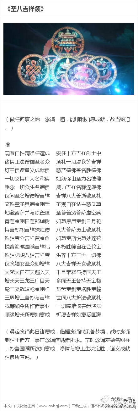 新年快乐!按照藏传佛教的传统,新年的第一天,若能念诵或听闻《圣八吉祥颂》一遍,可保佑自己在这一年里吉祥增上,诸愿成就。《圣八吉祥颂》原声首发 索达吉堪布新年祝福