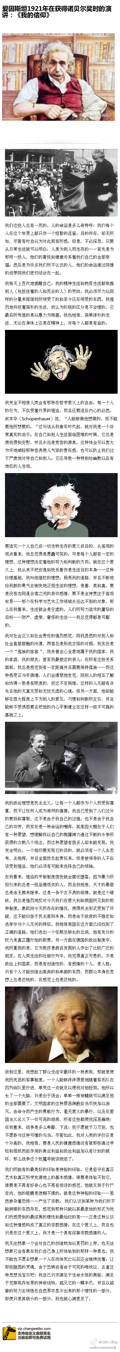 经核实,这篇文章what i beileve 虽然是爱因斯坦写的,但不是诺贝尔奖的获奖词,而是出自living philosophiesXIII,特此说明一下。