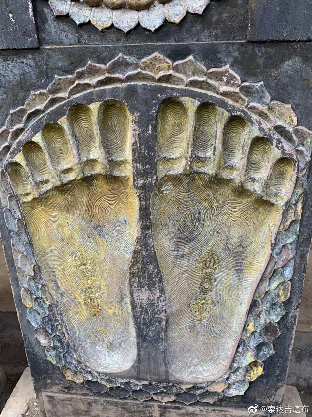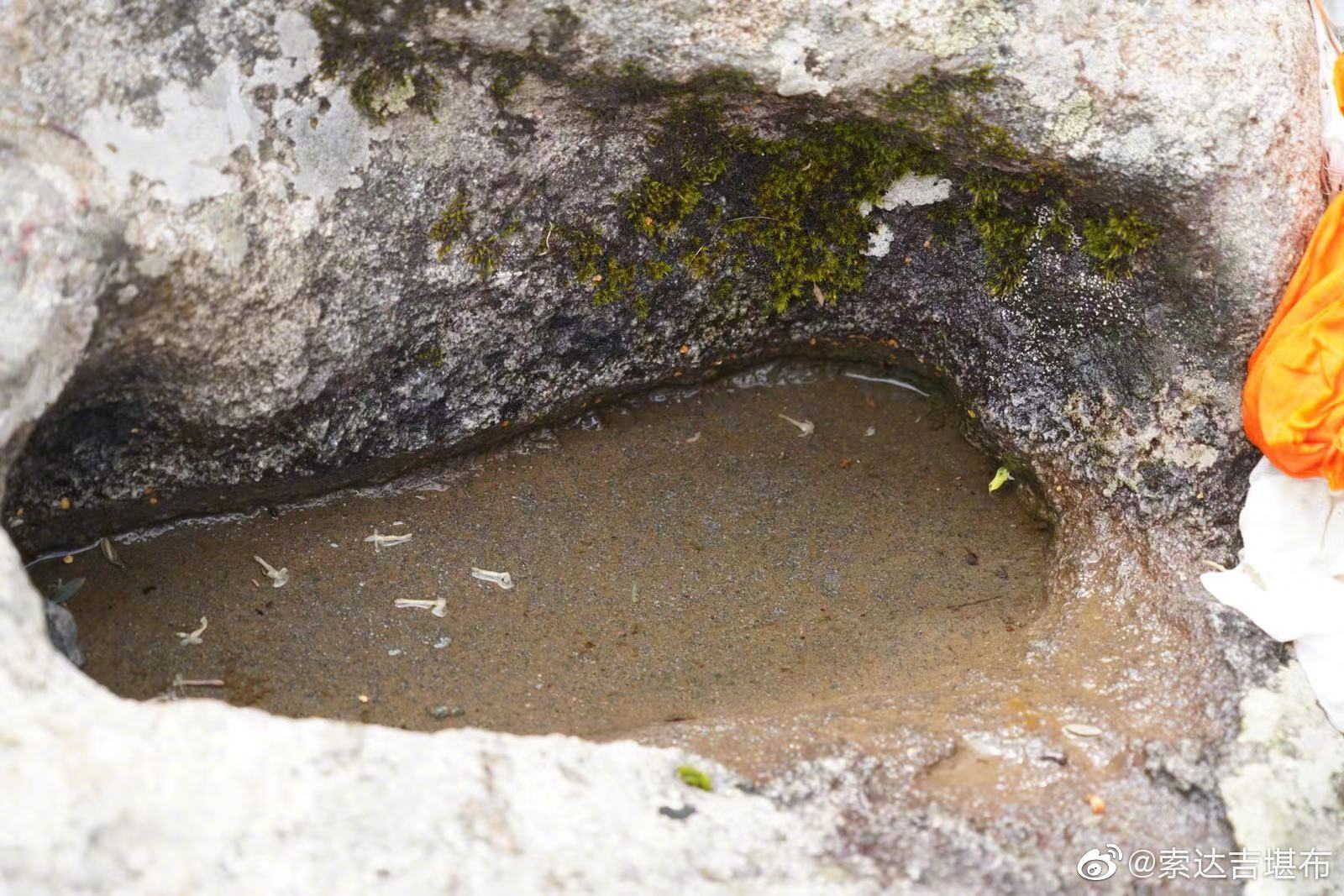 今天,我爬了很长时间的山,走了14250步,专门去朝拜了法王如意宝在石头上留下的这个脚印。