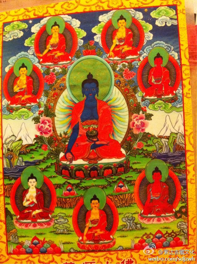 རྒྱུན་དུ་སངས་རྒྱས་སྨན་ལྷ་མཆེད་བརྒྱད་ལ་གསོལ་བ་བཏབ་ན་ཕན་ཡོན་ཆེན་པོ་ཡོད། 若经常祈祷药师佛, 得极大的利益。