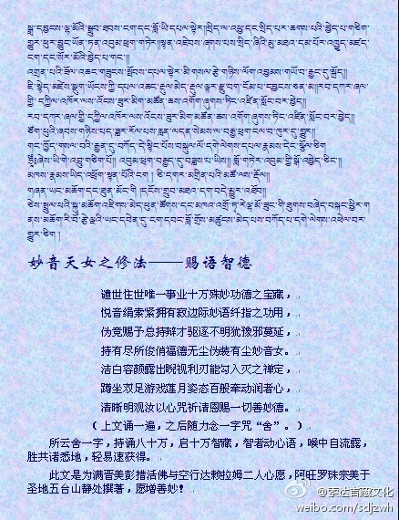 自己在多年的闻思经历中,心中珍藏着苦心积累的嘉言妙语,为了防止遗忘,也为了与大家分享,我的藏微博将以简单易懂的白话词句,把这些珍宝翻译成汉语,每天为大家奉上一段。这些教言的价值,远远超过了分别念的千百倍,但愿能成为滋养众生心灵的甘露。