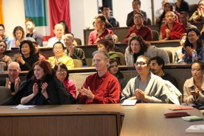 有机会在人文系教授禅修,我感到非常幸运。几年前我开设了一门本科课程,不仅学习禅修和瑜伽,同时通过学习理论以深入了解禅修。下半年我有一门研究生课程《正念禅修的入门》,也会学习禅修理论。我认为理论非常重要,原因是:禅修可以帮助我们加强内观、提升觉照;禅修对教育也有很大帮助,可以促进学生成长,使他们更成熟、慈悲、有觉照力——而这一切都扎根于理论学习。所以,堪布今天的演讲一定会给我们带来启发、鼓舞以及不一般的力量。