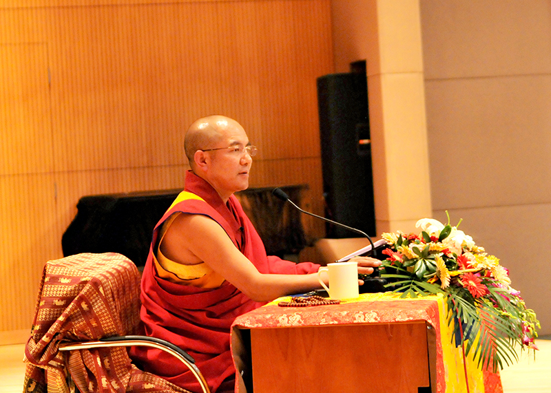 今天,我们非常高兴请到了堪布。这个时间非常宝贵,复旦虽然成立宗教学专业已有51年了,但对藏传佛教的研究、教学一直相当薄弱。如今有机会请堪布来,就要把时间尽可能用于堪布给我们开示。大家等会儿有什么问题,可以近距离地请教。现在我们欢迎堪布——
