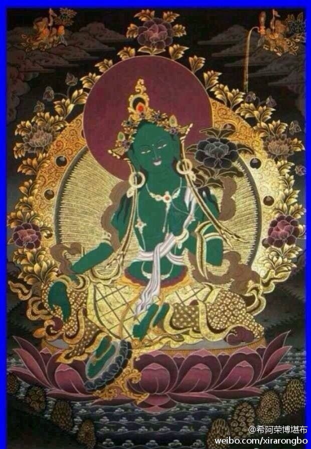 顶礼救苦救难至尊度母!愿见此度母像者能发愿念诵一千遍度母心咒:嗡 达瑞 德达瑞 德瑞 梭哈。诵此心咒,除诸病苦障难,远离烦恼,满足所愿,现世平安吉祥,命终往生极乐。以此功德回向一切众生解脱生死沉溺之苦,获得究竟安乐!